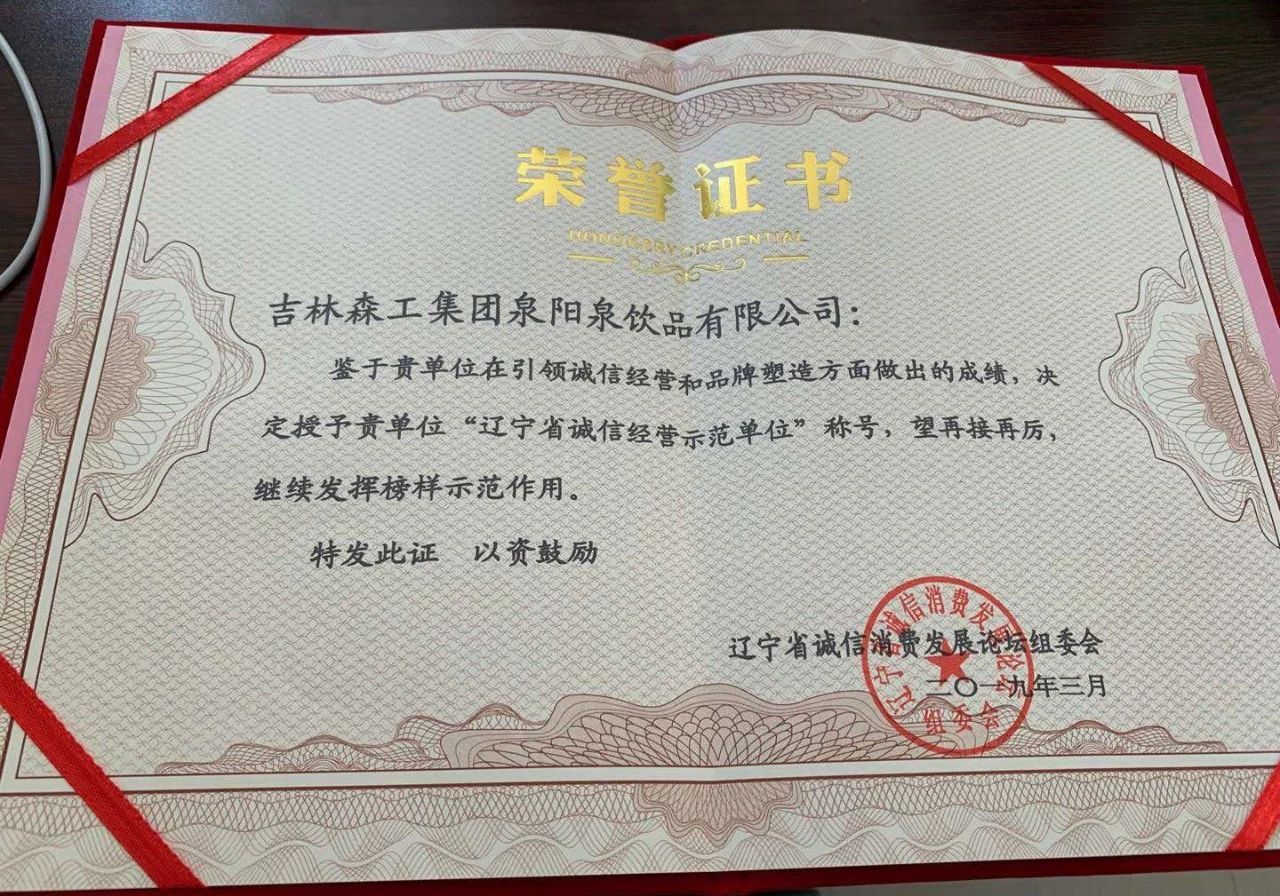 ? ? ? ? ?為了更好地貫徹落實習(xí)近平總書記在民營企業(yè)家座談會上的講話精神,以“保質(zhì)保量、誠信經(jīng)營、綠色消費”為主題,樹立一批“講誠信,負(fù)責(zé)任,守法紀(jì)”的先進典型。為企業(yè)與企業(yè)之間、企業(yè)與單位之間、企業(yè)與消費者之間搭建了一個很好的交流、合作平臺。在此次論壇中,吉林森工集團泉陽泉有限公司榮獲“遼寧省誠信經(jīng)營示范單位”榮譽稱號。
