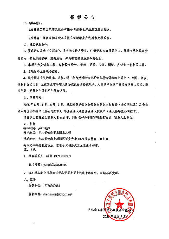 吉林森工集團泉陽泉飲品有限公司